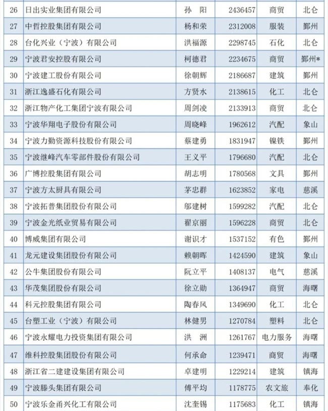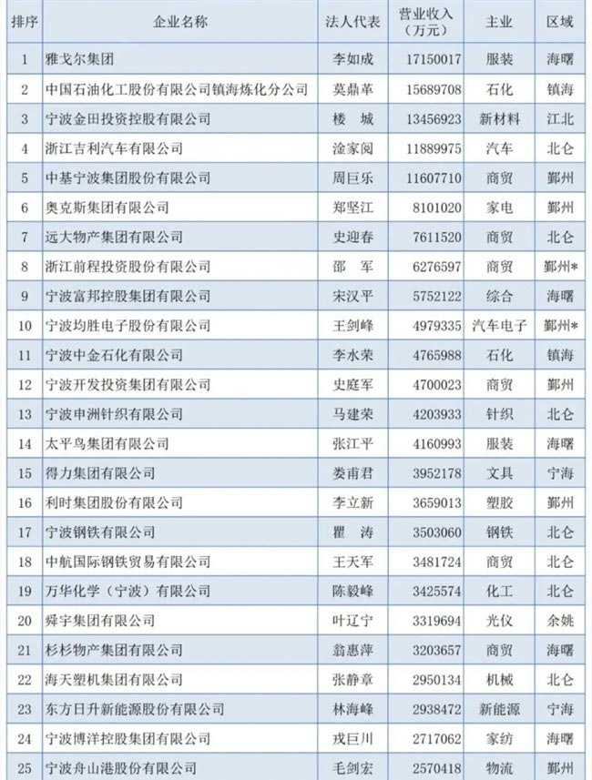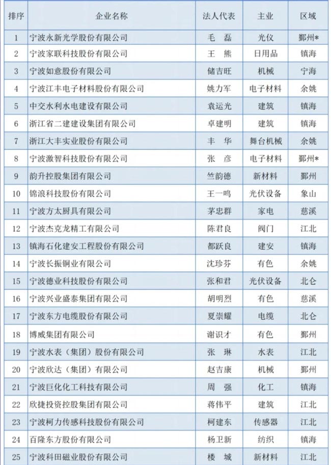 2023寧波市競(jìng)爭(zhēng)力企業(yè)百?gòu)?qiáng)榜單